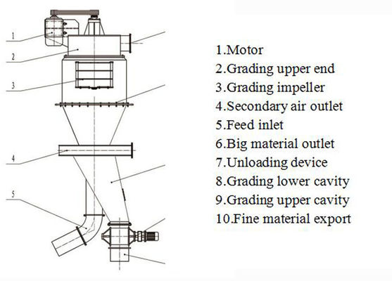 Velocidade de rotação do eixo principal 100-380 r/min Classificador de ar de ciclone para separação de minerais 6Velocidade de rotação do eixo principal 100-380 r/min Classificador de ar de ciclone para separação de minerais 7