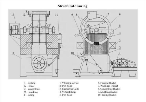 Possui as vantagens de uma grande taxa de benefício, alta segurança e operação conveniente, etc.Este produto realiza tanto alta taxa de beneficiação e alta taxa de reciclagem na separação de minerais magnéticos fracos.